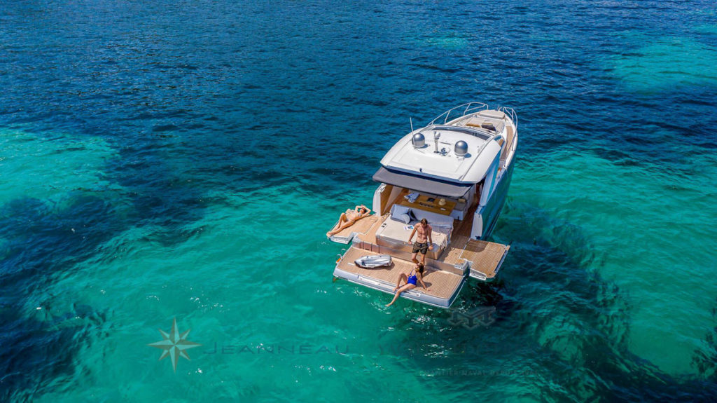 Sécurisant et confortable durant les trajets, le DB/43 IB accueille jusqu’à douze personnes paisiblement assises. Changement de programme au mouillage où les deux terrasses latérales se déploient pour former une immense plateforme arrière ouverte sur la mer. En quelques secondes, les dossiers basculent et reconstituent, dans le cockpit, un magnifique espace salon adossé à une cuisine en ilot aux allures de bar. Cuisiner en discutant, siroter un apéritif, bronzer sur le pont avant, ou nager parmi les poissons… à vous de décider.