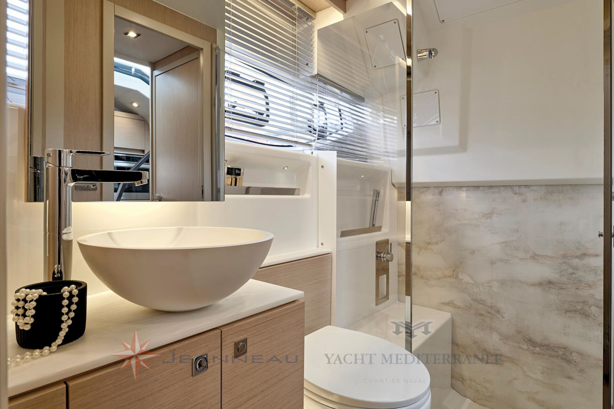 Doté d’une belle motorisation hors-bord, le DB/43 OB vous offre un pilotage sportif et souple, agrémenté de pointes de vitesses flirtant avec les 40 nœuds. Des performances qui s’accompagnent d’une tenue en mer remarquable et d’un confort de navigation, dû notamment à la carène signée Michael Peters. La ligne racée et incomparable ne laissera pas indifférent. Elle donne le ton d’un bateau au design étincelant et moderne. La cabine propriétaire, baignée de lumière et spacieuse offre un confort et des finitions étonnants. Les invités sont accueillis dans une superbe cabine traversante.