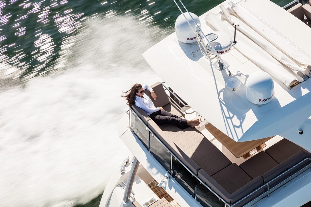 Les volumes dédiés à l’immense salon, aux 3 cabines, la cabine centrale de propriétaire, aux salles d’eau privatives et au flybridge permettent la vie à bord dans des conditions de confort absolu.