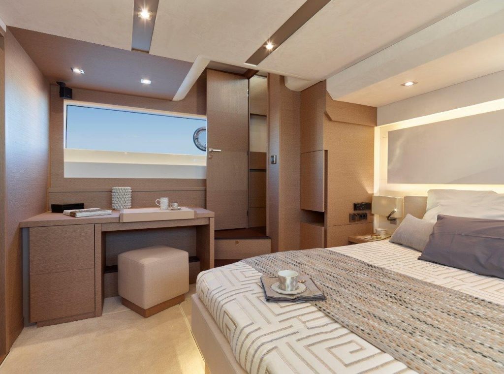 Le luxe des aménagements intérieurs dévoile des choix de matières, des harmonies de couleurs et un niveau d’équipements réservés aux grands yachts de croisière.